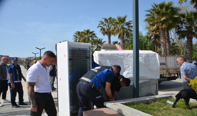 Sinop Belediyesi tarafından sahildeki tezgahların kaldırılması sırasında gerginlik yaşandı. Tezgahının kaldırılmasına karşı çıkan bir seyyar satıcı, bıçağı boğazına dayayarak zabıtalara direndi.
