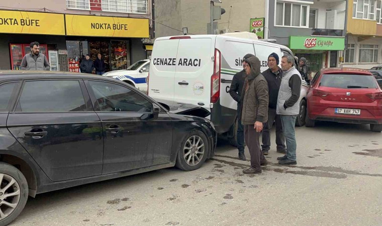 Kaza, saat 11.00 sıralarında Gelincik Mahallesi Fatih Caddesi’nde meydana geldi. Edinilen bilgiye göre, Erol Konukçu’nun kullandığı 57 AAH 747 plakalı otomobil, Metin Bektaş yönetimindeki 57 AG 915 plakalı Sinop Belediyesi’ne ait cenaze aracı ve Aygül Yalçın idaresindeki 57 AY 138 plakalı otomobil kazaya karıştı. Çevredeki vatandaşların ihbarı üzerine kaza yerine trafik ve sağlık ekipleri sevk edildi. Üç aracın karıştığı kaza, maddi hasarlı olarak atlatıldı.