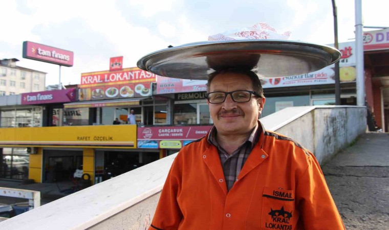 Türkiye’de sıra dışı örnekleriyle adından söz ettiren Karadenizliler’e bir yenisi daha eklendi. Trabzon’da bir lokantada garson olarak çalışan 53 yaşındaki İsmail Yıldırım sipariş verilen yemeklerin konulduğu tepsiyi eliyle değil de kafasında taşıyarak götürüyor.