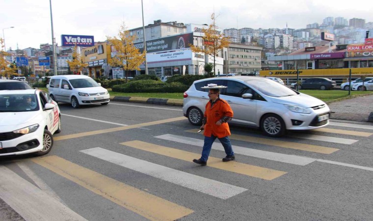 Kendine özgü tarzıyla ilgi çeken Yıldırım, yemek tepsisi ile merdivenleri, yolları arşınlıyor, trafiğe aldırmadan araçların arasından geçip yemekleri yerlerine ulaştırıyor.