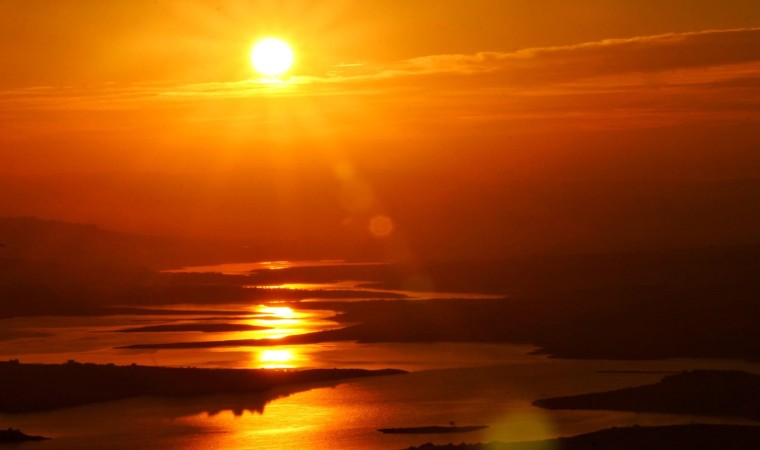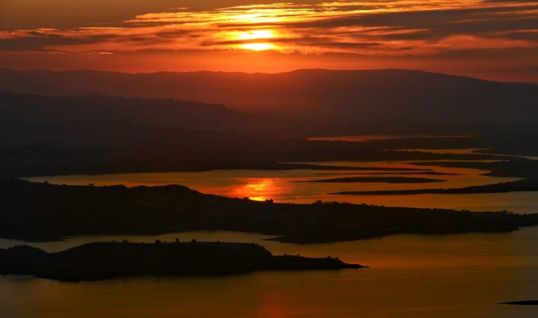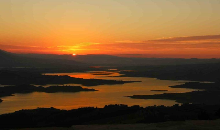 Kahramanmaraş Sır Barajı’nda gün batımı görsel şölen sunuyor.