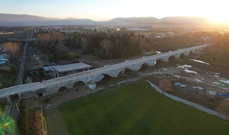 Doğu Roma İmparatoru Justinianus tarafından MS 562 tarihinde yaptırılan, adını imparatordan alan ve Ayasofya Camii ile yaşıt tarihiyle dikkat çeken Justinianus Köprüsü 12 kemer gözünden oluşuyor. Justinianus’un Boğaziçi yerine gemiyle Anadolu’dan geçebilmek için kanal projesi planladığı ve köprünün bu projenin bir parçası olduğu iddiaları uzmanlar tarafından tartışılırken sır perdesi hala çözülemedi. Halk arasında Beşköprü olarak da bilinen ve 2018’de UNESCO tarafından Dünya Mirası Geçici Listesi’ne alınan köprüde restorasyon kapsamında yapılan kazılarda güney cephesindeki sarnıç ve hamam yapısı ortaya çıkmıştı. Bin 500 yıldır tarihe tanıklık eden Justinianus Köprüsü, Bizans İmparatorluğu döneminin Anadolu’daki en görkemli eserlerinden biri olarak da biliniyor. Köprü tarihi hakkında bilgi veren Sakarya Uygulamalı Bilimler Üniversitesi (SUBÜ) Sakarya Sosyal ve Kültürel Çalışmalar Uygulama ve Araştırma Merkezi (SAKUM) Müdürü Dr. M. Alper Cantimer, “Justinian döneminin önemli eserlerinden bir tanesidir, 562 yılında yapılmıştır. Günümüze gelen bu köprüyle ilgili çok fazla ve farklı görüş bulunmaktadır. Köprünün manzara ile içerisindeki uyumsuzluğu dikkat çekmektedir. Bu da aslında köprü üzerindeki araştırmaların çoğalması gerektiğini de bize göstermektedir. Köprü üzerinde şu an itibariyle Karayolları Genel Müdürlüğü’nün 2019 yılında başlamış olan bir yenileme çalışması devam etmekte ve 2018 yılında da UNESCO Dünya Geçici Kültür Miras Listesi’ne dahil edilmiş önemli bir yapıdır” dedi.