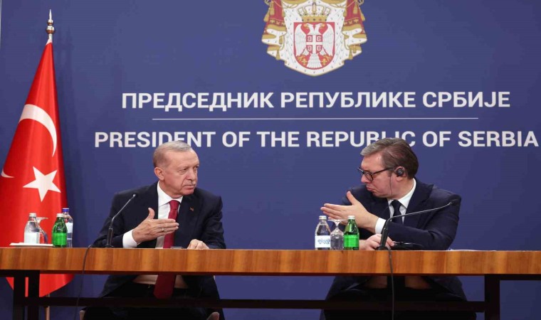 Sırbistan Cumhurbaşkanı Aleksandar Vucic, başkent Belgrad’da ağırladığı Cumhurbaşkanı Recep Tayyip Erdoğan ile ortak basın toplantısı gerçekleştirdi. Cumhurbaşkanı Vucic, Erdoğan ile baş başa görüştüklerini ve ikili anlaşmaların imzalanmasının ardından Sırbistan ile Türkiye’nin ayrı ayrı ve birlikte karşılaştıkları tüm önemli jeopolitik konuları ele aldıklarını ifade etti. Vucic, “Cumhurbaşkanı Erdoğan’a ülkemizi ziyaret etme ve kolay olmayan tüm konular hakkında her zaman açık bir şekilde konuşma konusundaki iyi niyetini gösterdiği için minnettarım” dedi. Vucic, iki ülkenin AB ile olan ilişkilerini ve Avrupa yolundaki konumlarını, AB’nin bu ülkelere yönelik tutumunu da görüştüklerini aktardı.