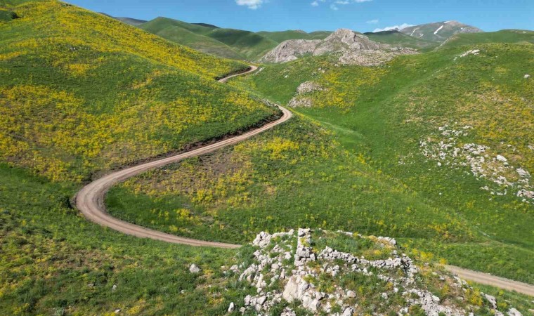 Şırnak’ın Beytüşşebap ilçesindeki yüksek bölgeler havaların ısınmasıyla beraber sarı renge büründü. 3 bin rakımlı bölgeler yağış sonrası açan çiçeklerle renklendi. İlçeye 35 kilometre uzaklıkta bulunan Feraşin ve Kato yaylalarındaki dağlar sarıya büründü. Havadan görüntülenen bölge kartpostallık görüntü oluşturdu.