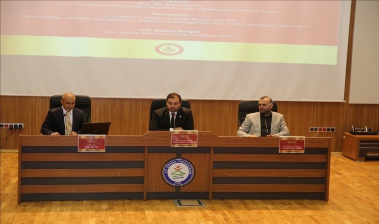 Panelde son olarak söz alan üniversite öğretim üyelerinden Dr. Öğretim Üyesi Mustafa Burak Çelebi de, “Milli İrade-Vesayet Tartışmaları Ekseninde Türkiye’nin 100. Yıllık Demokrasi Serüveni” başlıklı bir sunum yaptı. Panel, soru-cevap bölümünün ardından Güzel Sanatlar Fakültesi Resim Bölümü öğretim görevlileri ve öğrencilerinin hazırladığı resim sergisinin gezilmesi ile sona erdi.