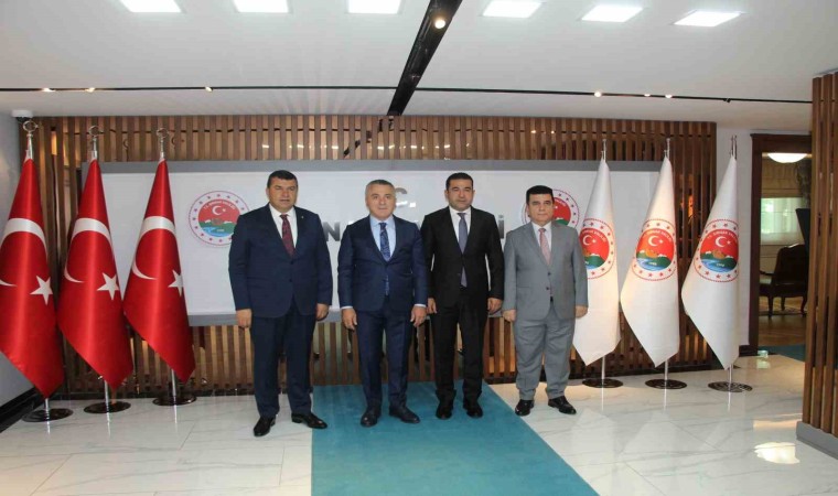 İki vali, görüşmelerin ardından birbirlerine hediye taktim etti.