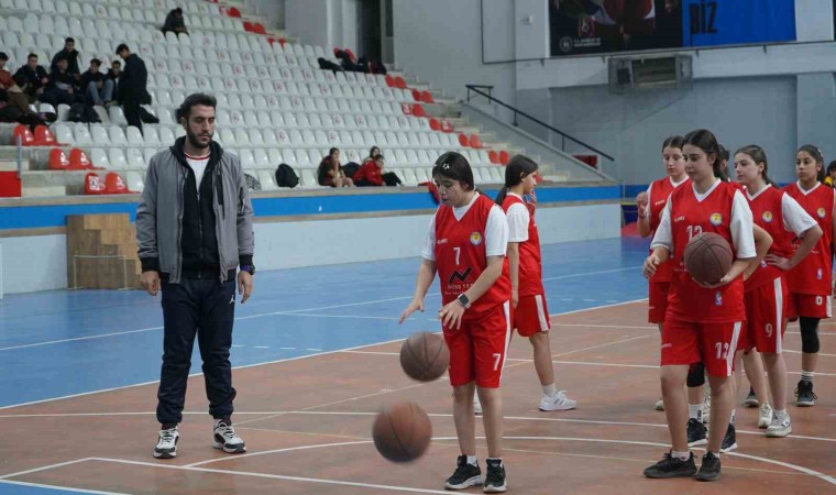 Şırnak’ta yaşayan yüzde 52 işitme engelli Türkiye İşitme Engelliler A Milli Erkek Basketbol Takımı oyuncusu Mehmet Özcan, gençleri basketbola teşvik ediyor.