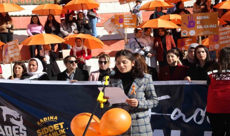 Şırnak Aile, Çalışma ve Sosyal Hizmetler İl Müdürlüğü tarafından farkındalık oluşturmak için düzenlenen yürüyüşte ellerinde turuncu şemsiyelerle Ömer Kabak Meydanı’ndan Cumhuriyet Meydanı’na kadar yürüyen katılımcılar, "Kadına el kalkamaz" yazılı pankart taşıdı. Şırnak Aile, Çalışma ve Sosyal Hizmetler İl Müdürlüğü