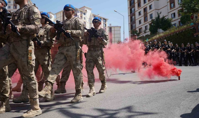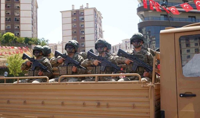 Ardından askeri geçit töreni yapıldı. Şırnak sokakları Şırnak 23’üncü Piyade Tümen Komutanlığı, İl Jandarma Komutanlığı ve Çakırsöğüt 1’inci Jandarma Komando Tugayı askerlerinin söylediği ‘Gündoğdu Marşı’ ve ‘Vatan Sana Canım Feda’ sloganları törene damga vurdu. Askerler tarafından atılan sloganlar katılımcılardan büyük bir alkış aldı. Asker, polis, öğrenci ve resmi kurum personellerinin yürüyüşlerinin ardından araç geçişi ile tören sona erdi.
