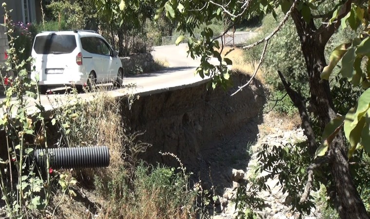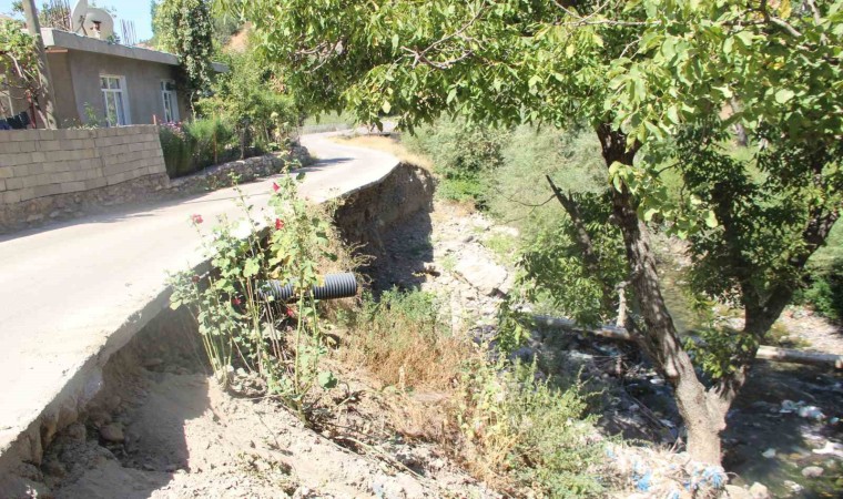 Şırnak’ın Uludere ilçesi Ortasu köy yolunun yarısı, kış ayında aşırı yağışlardan sonra yanından geçen akarsuyun toprağı taşımasıyla boşlukta kaldı.