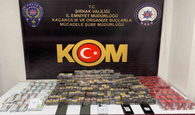 Şırnak ve Habur Sınır Kapısında yapılan operasyonlarda, 21,50 gram metamfetamin, 2 adet bong, 4 bin 958 paket sigara, 181 adet elektronik sigara, 181 adet muhtelif emtia, 5 adet cep telefonu ve 14 kilo kaçak çay ele geçirildi.