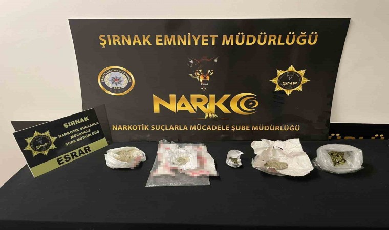 Şırnak İl Emniyet Müdürlüğü birimleri tarafından 1 hafta içerisinde 13 asayiş, kaçakçılık ve narkotik operasyon gerçekleştirildi. Operasyonlarda 1881,08 gram metamfetamin maddesi, 392,30 gram esrar maddesi, 1 adet bong, 1 adet hassas terazi, 14 adet tabanca, 28 adet şarjör, 116 adet fişek, 50 adet silah parçası, 16 bin 670 paket sigara, 216 adet puro, 430 kilo nargile tütünü, 11 kilo tütün, 718 adet elektronik sigara, 2 adet cep telefonu, 166 adet cep telefonu aksesuarı ele geçirildi.