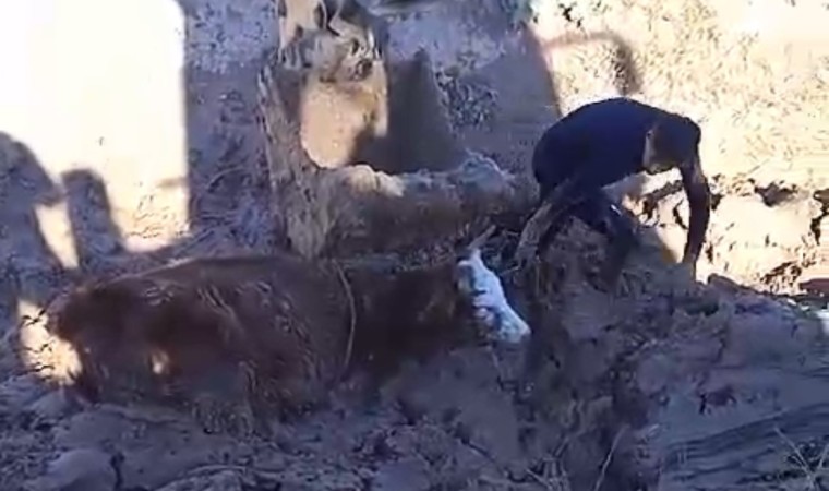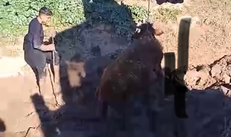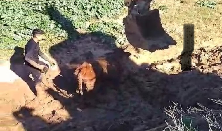 Çaltu, köyde devam eden internet altyapı güçlendirme çalışmalarında çalışan kepçe operatörü Eray Sülün’e ricada bulundu. Sülün, ineği halatla bağlayarak saplanan çamurdan yaklaşık 2 saatlik uğraşla çıkardı.