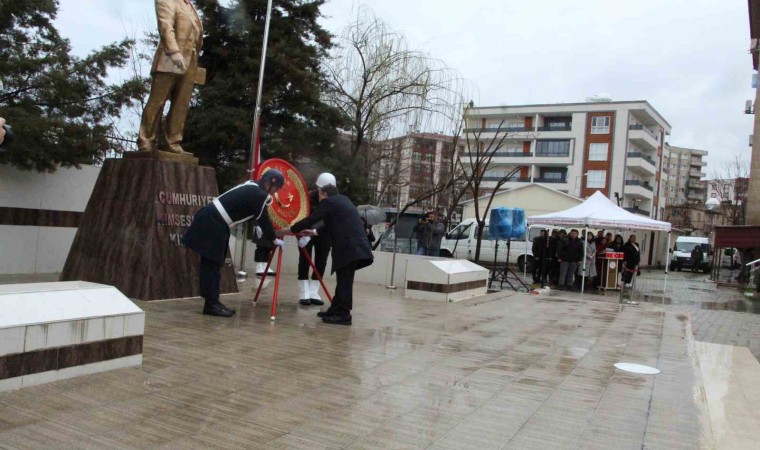 Atatürk anıtına çelenk sunulması ile başlayan tören, Atatürk ve silah arkadaşları için bir dakikalık saygı duruşunda bulunulması ve İstiklal Marşı’nın okunmasıyla devam etti.