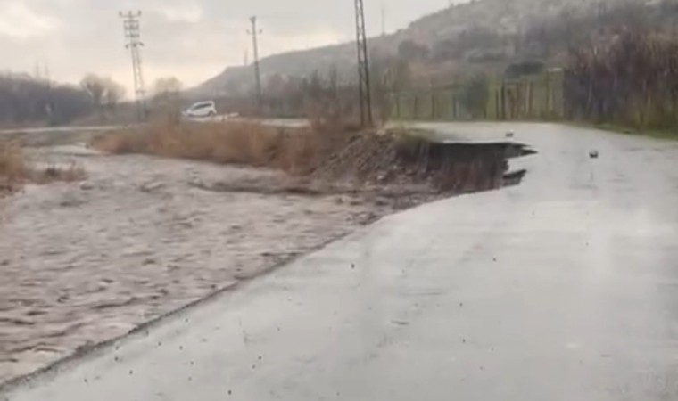 Şırnak’ın Silopi ilçesinde etkili olan sağanak yağışla birlikte dereler taştı, asfalt yolun bir kısmı çöktü.