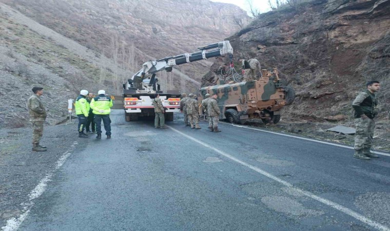 Şırnak’ın Uludere ilçesinde 2 askerin yaralandığı kazada, zırhlı askeri araç yoldan kaldırıldı.