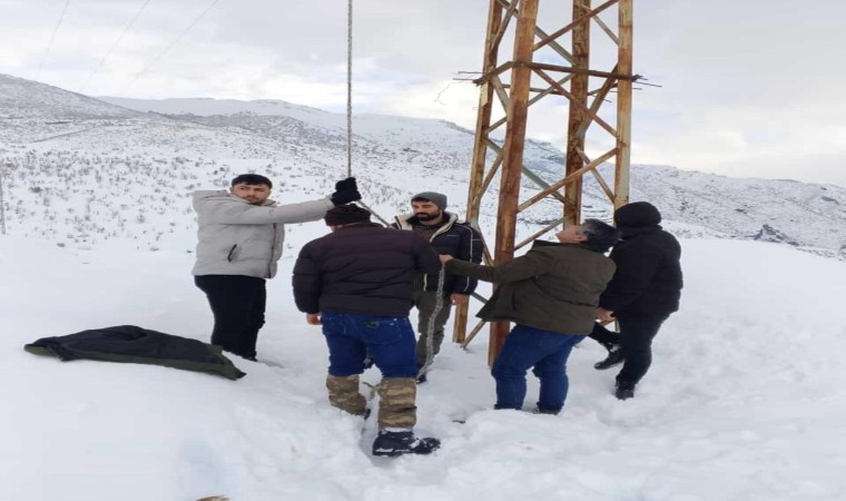 Şırnak’ta kar yağışı sonrası elektrik telleri kopunca, onarıma giden Dicle Elektrik arıza onarım ekibine köylüler de imkanlar dahilinde yardım etti.