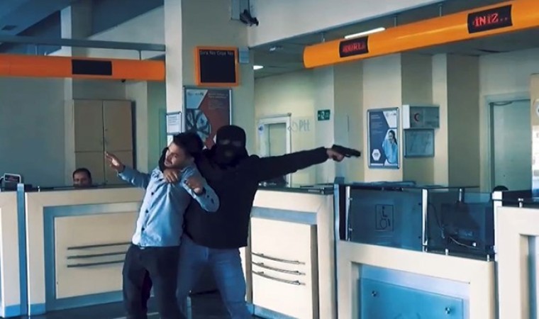 Şırnak PTT Başmüdürlüğü’nde gerçekleştirilen hırsızlık tatbikatında, senaryo gereği, bir emniyet personeli kar maskesi ile elinde silahla banka birimine girdi. Bir PTT personelini rehin alan soyguncu, kasada bulunan tüm paraları çantaya konulmasını istedi. Çalışanlar hırsızı oyalayıp durumu 112 Acil Çağrı Merkezine bildirdi.