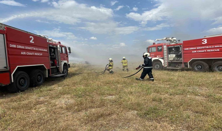 Şırnak Şerafettin Elçi Havalimanı’nda personelin tecrübe kazanması ve araçların performansının denenmesi amacıyla yapılan yangın ve acil durum tatbikatı gerçeğinii aratmadı.