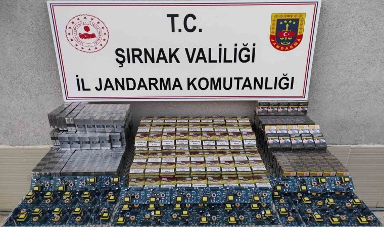 Şırnak il merkezi ve ilçelerinde yapılan ihbarları değerlendiren Şırnak İl Jandarma Komutanlığı Kaçakçılık ve Organize Suçlarla Mücadele Şube Müdürlüğü ekipleri çok sayıda gümrük kaçağı malzeme ele geçirdi.