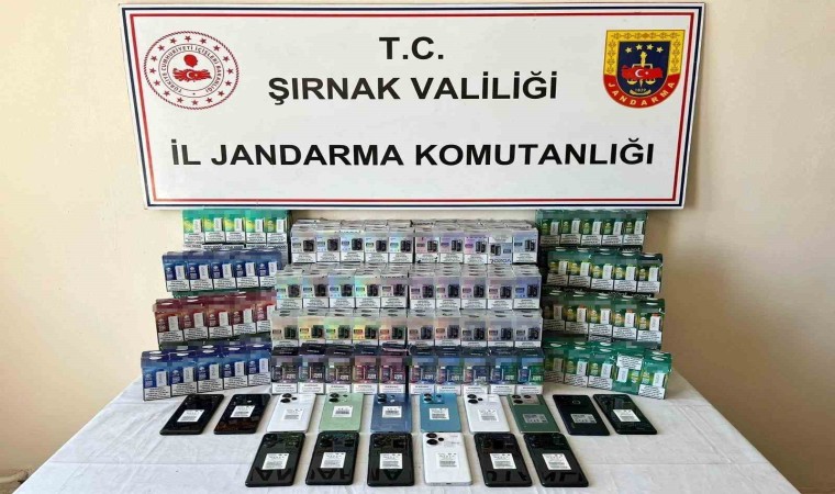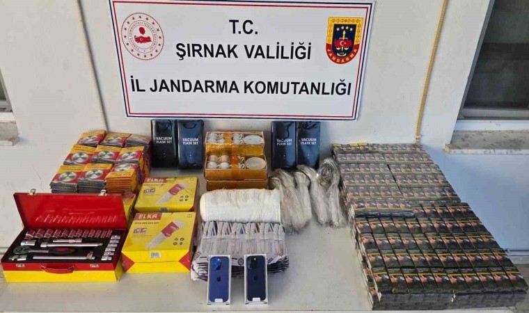 Şırnak İl Jandarma Komutanlığı Kaçakçılık ve Organize Suçlarla Mücadele Şube Müdürlüğünce Silopi, Cizre ve İdil ilçelerinde yapılan operasyonlarda, 6 adet cep telefonu, 3 adet uyuşturucu kullanma aparatı, 6 bin 367 adet bandrolsüz sigara, 347 adet elektronik sigara, 184 adet kaynak makinesi, 44 adet ayakkabı, 22 adet elektronik eşya, 267 inşaat malzemesi, 660 adet anahtar takımı, 110 adet muhtelif ev-büro eşyası, 3 bin 174 adet el aletleri, 288 adet kozmetik malzemesi, 780 adet mutfak eşyası, 184 adet kaynak makinesi, 4 adet sikke, 1 adet yüzük ele geçirildi.