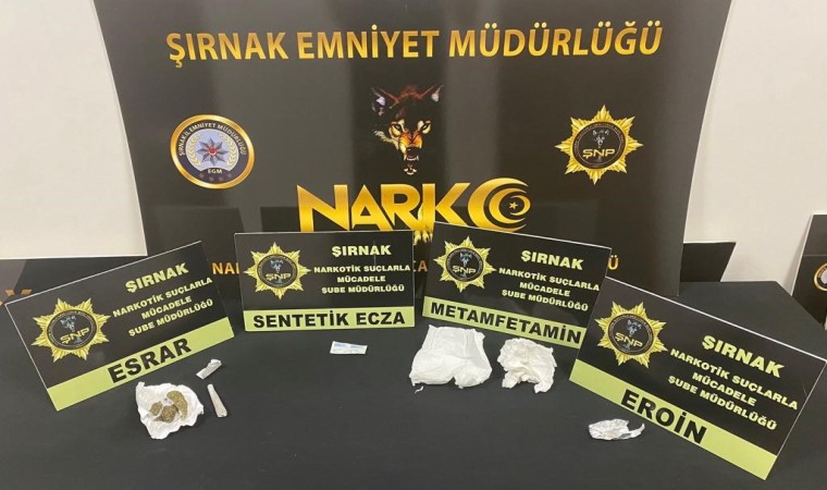 Şırnak ve Habur Sınır Kapısı’nda kolluk kuvvetleri tarafından yapılan operasyonlarda; 14,80 gram esrar, 14 gram skunk, 8,34 gram metamfetamin, 0,39 gram eroin, 2 adet sentetik ecza, 1 adet bong, 1 adet tabanca, 2 adet şarjör, 9 bin 260 paket sigara, bin 384 adet muhtelif emtia, 18 adet cep telefonu, 6 adet elektronik emtia ve 9 kilogram kaçak çay ele geçirildi.