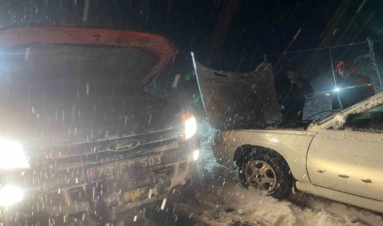 Vatandaşlar, yolun kardan temizlenmesi sonrasında yollarına devam etti. Aracı bozulan bir aile, AFAD arama kurtarma aracı ile kent merkezine getirildi.