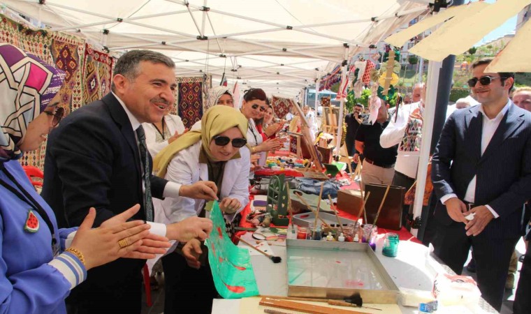 Konuşmaların ardından sergi, ziyarete açıldı. Sergide kilim, ahşap yakma, modelistlik, el sanatları, tel kırma, örgü, resim, filografi ve geri dönüşüm malzemeleri başta olmak üzere, çok sayıda el işi ürünler yer alıyor. Sergi, gün boyunca ziyaretçilere açık olacak.