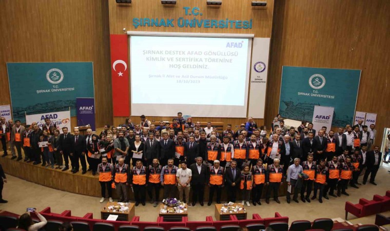 Şırnak Üniversitesi 15 Temmuz Kongre salonunda düzenlenen programda Şırnak’ın 12 mahalle muhtarına AFAD gönüllülük sertifikası ve kimlikleri verildi. Düzenlenen programa Şırnak Vali Yardımcısı Ahmet Kavanoz, Şırnak Belediye Başkanı Mehmet Yarka, Şırnak Üniversitesi Rektörü Abdurrahim Alkış, AFAD İl Müdürü Muzaffer İşlek ve kamu kurum temsilcileri ile vatandaşlar katıldı. Türkiye’de afet yönetimi ve koordinasyonu alanında İçişleri Bakanlığı Afet ve Acil Durum Yönetimi Başkanlığının önemli faaliyetler gerçekleştirildiğini ifade eden Şırnak Vali Yardımcısı Ahmet Kavanoz; “Ülkemizin dört bir yanında AFAD, afet öncesi hazırlık ve zarar azaltma, afet esnasında yapılacak müdahale ve afet sonrasındaki iyileştirme çalışmalarının yönetim ve koordinasyonunu gerçekleştiriyor. Böyle önemli bir kurumumuzda AFAD gönüllüsü olmak, vatandaşlarımıza zor zamanlarında hizmet ederek yanlarında olduğunu göstermek toplum hizmeti çalışmalarına önemli katkı sunmaktadır. Muhtarlarımızın da afetlerde vatandaşlarımızın yanlarında olabilmek için AFAD gönüllüsü olmalarını, bu yolda mücadele etmelerini önemsiyorum. Temel AFAD gönüllüsü olarak eğitimleri başarıyla tamamlayan ve destek AFAD gönüllüsü olmaya hak kazanan muhtarlarımızı ve katılımcılarımızı yürekten tebrik ediyorum” dedi.