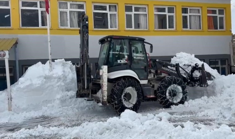 İlçeye bağlı Uzungeçit beldesindeki okullar yarı yıl tatilinde öğrenciler için hazırlanıyor. Pazartesi günü okulların açılması üzerine Belediye Başkanı Cemil Yıldız, belde genelindeki okullarda kar temizliği başlattı. Okulların birinci katına kadar dolan kar yığınları temizlenerek öğrencilerin daha rahat okula gitmeleri için hazırlık yapıldı.