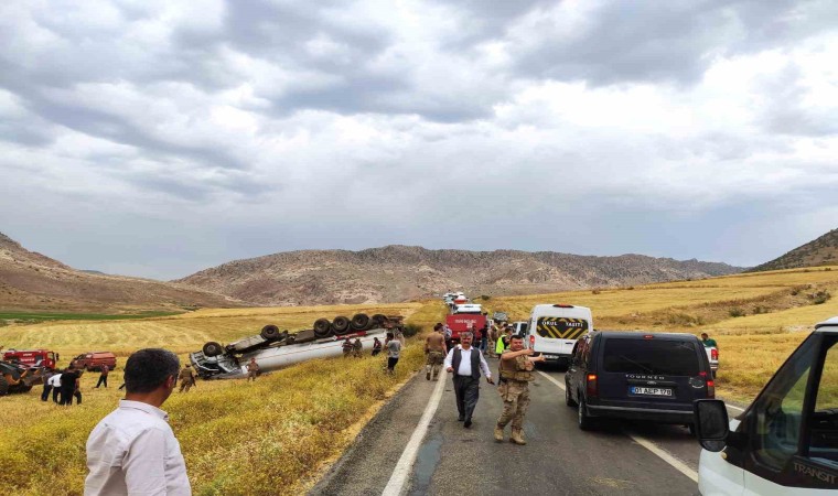 Şırnak’ta petrol yüklü tankerin devrildiği kazada 2 kişi yaralandı.