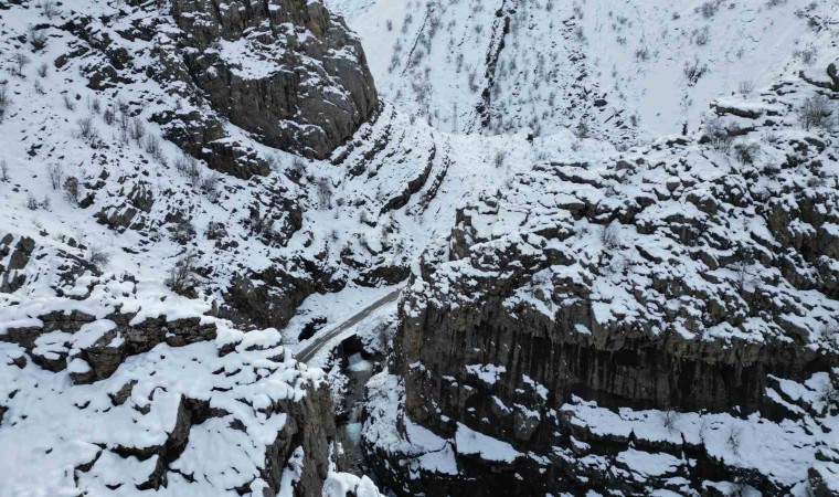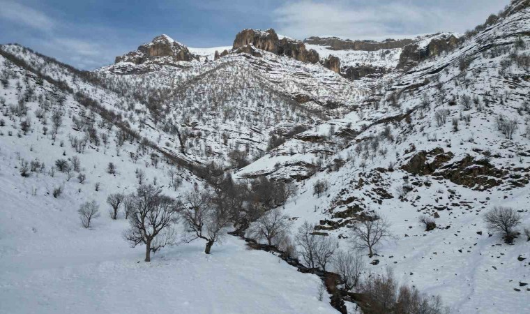 Şırnak’ta kar yağışıyla beraber şelalede kartpostallık görüntüler oluştu.
