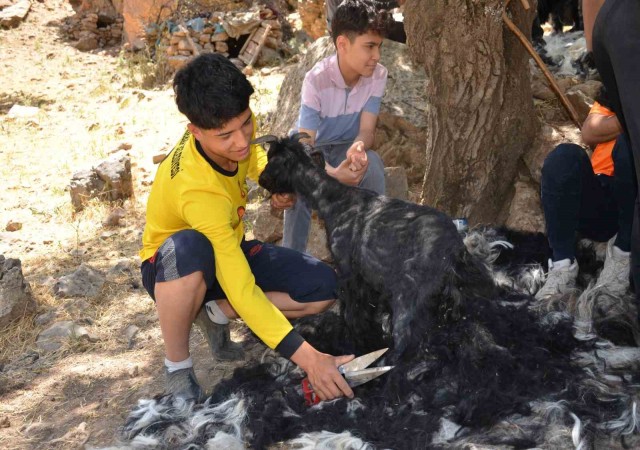 Şırnakta sıcak havalardan etkilenen oğlaklar kırkılıyor