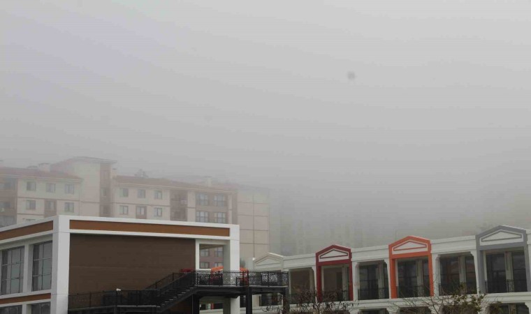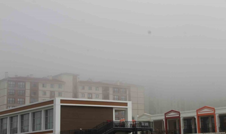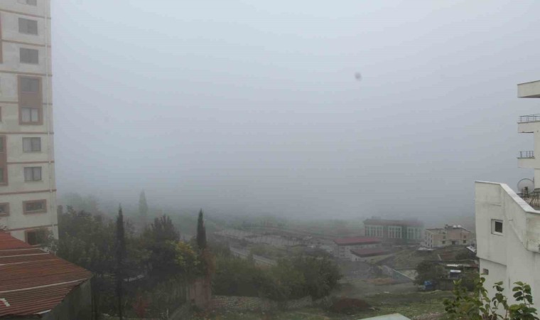 Yoğun sis bulutu içerisinde Şırnak’ta yüksek binalar kayboldu.