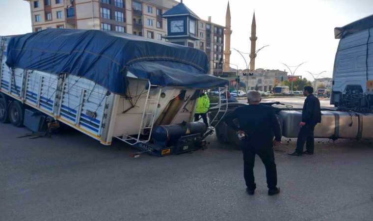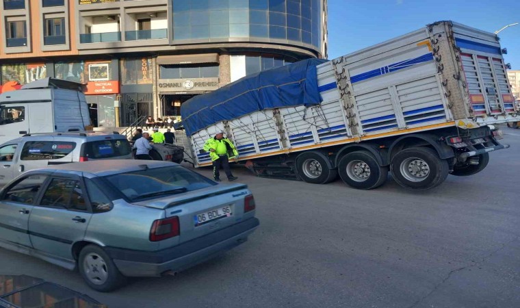 Alınan bilgilere göre, merkez Belediye Kavşağı’nda 27 EB 892 plakalı gıda yüklü tırın, kavşakta dönmeye çalıştığı esnada dorsesi düştü. Trafiğin kalabalık olduğu saatte meydana gelen olayda faciadan dönüldü. Olay yerine polis ekibi sevk edildi. Trafik güvenliğini sağladıktan sonra, dorsenin kaldırılması için çalışma başlatıldı.