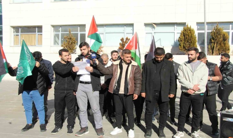 Şırnak Üniversitesi öğrencileri 15 Temmuz Kongre ve Kültür Merkezi fuaye alanında bir araya geldi. Öğrenciler adına basın açıklamasını Ahmet Tan okudu. Uluslararası hukuku ve insan haklarını hiçe sayan İsrail’in bu pervasızlığının en büyük sorumlusunun, işgalin ve yapılan katliamların hesabını sormayan uluslararası toplum olduğunu söyleyen Tan, "Filistin halkının haklarını koruyacak yegane şey, onurunu kaybetmemiş insanlığın harekete geçmesidir. Sessiz kalmak, zulme ortak olmakla eş değerdir" dedi. Tan şöyle devam etti:
