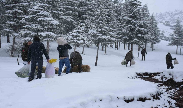 Ekipler, hava sıcaklığının sıfırın altına düştüğü yüksek kesimlerde yemleme çalışması yaptı.