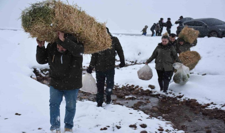 Şırnak - Siirt kara yolu Birini Tepesi bölgesini ağır kış şartlarından etkilenen yaban hayvanları için araçla ulaşımın olmadığı yerlere gönüllü kuruluşların da desteği ile buğday, arpa, sebze artığı, et ve yonca bırakıldı.
