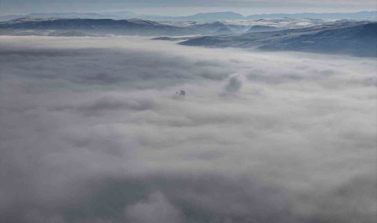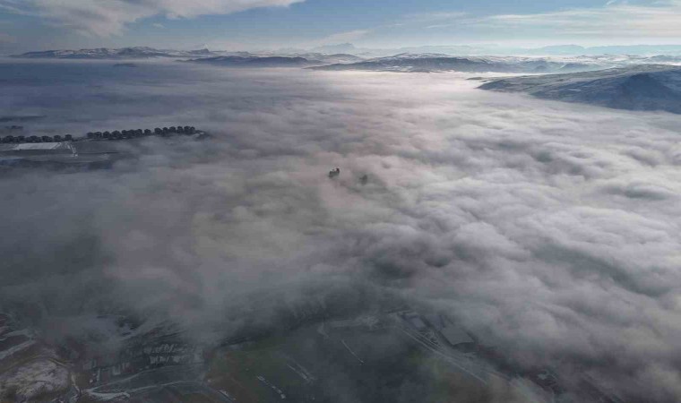 Termometrelerin sıfırın altında 7 dereceyi gösterdiği Sivas’ta sabah saatlerinde yoğun sis etkili oldu. Özellikle şehrin batısında yer alan 2 bin rakımlı Merakum Tepesi’nden izlenen sis tabakası, adeta bir doğa şöleni sundu. Şehir, nadir görülen sis bulutlarının altında kayboldu. Görenleri kendine hayran bırakan bu doğa olayı kartpostallık görüntüler oluşturdu. Öte yandan şehir içinde de etkili olan sis, görüş mesafesini yaklaşık 50 metreye kadar düşürdü. Sürücüler dikkatli ilerledi.