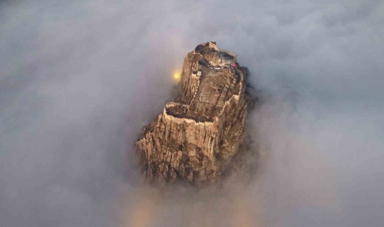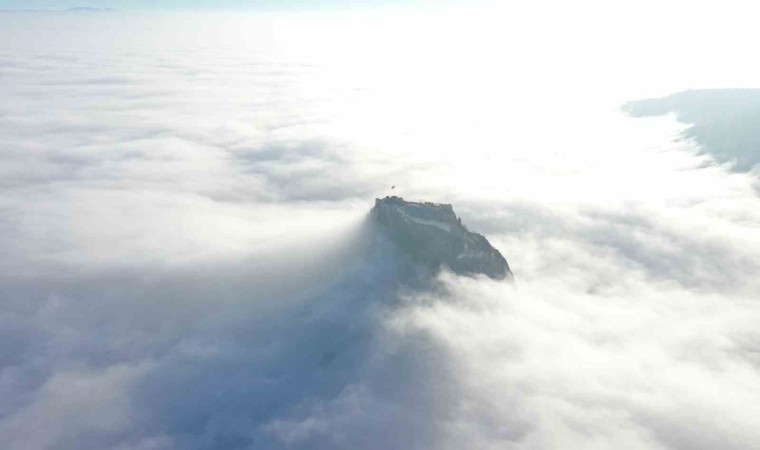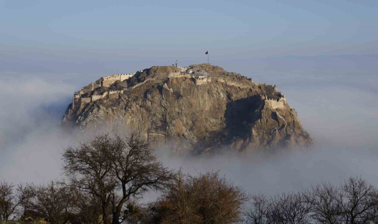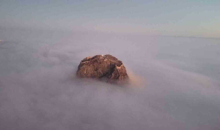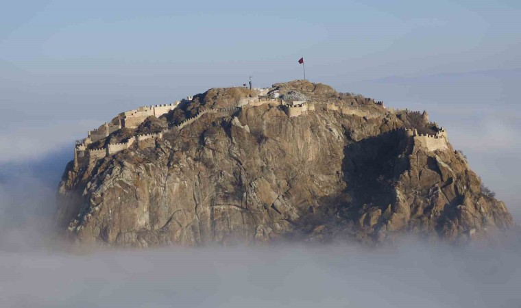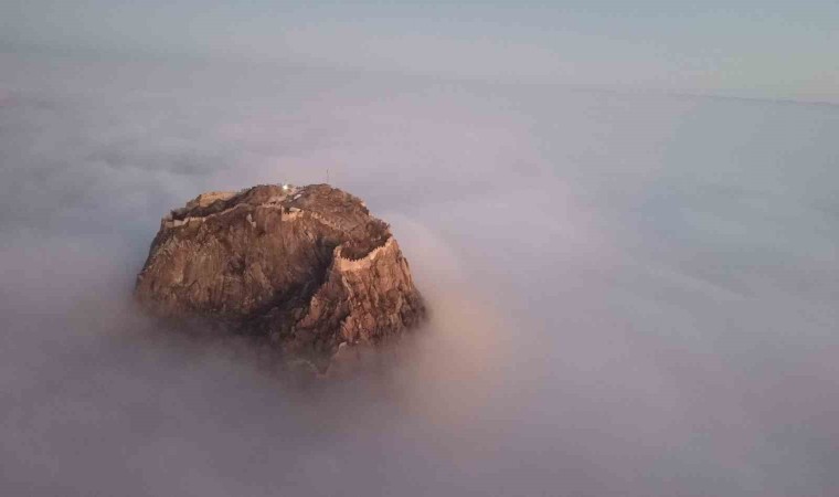 Afyonkarahisar’da yoğun sis Karahisar Kalesi’nde kartpostallık görüntüler oluşturdu.