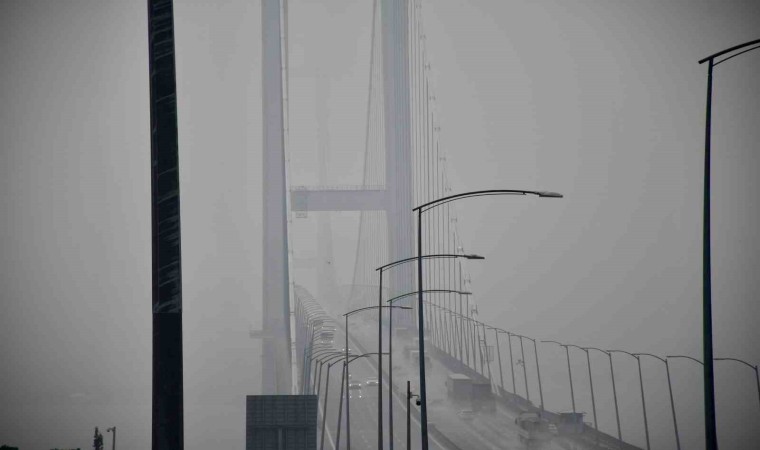 İzmit Körfezi’nde İstanbul-İzmir otoyolunun önemli geçişlerinden Osmangazi Köprüsü’nde sis ve sağanak yağış etkili oluyor.