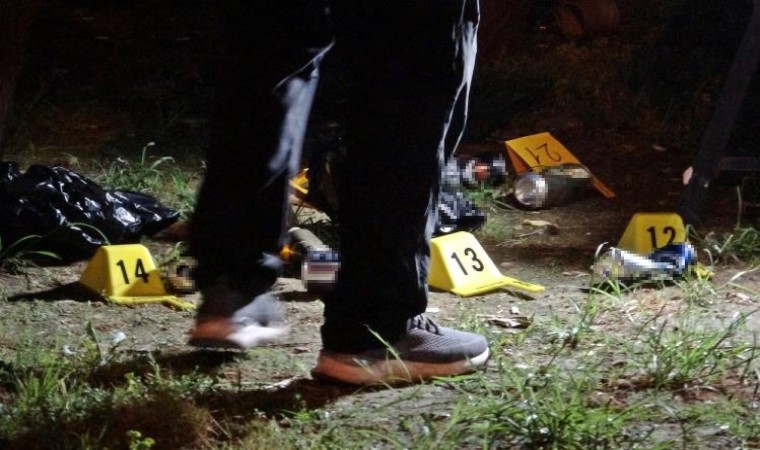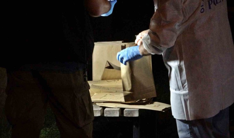 Bölgede incelemelerini sürdüren Olay Yeri İnceleme ekipleri, parkta bir bölümü yerlere saçılmış, bir bölümü ise bankta bulunan çok sayıda alkol şişesini delil olarak delil torbasına koydu.