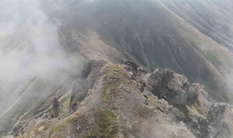 Iğdır ile Ağrı sınırı arasında uzanan ve yoğun sisler altında saklı kalmış Zor Sıra Dağların muhteşem görüntüsü havadan görüntülendi.