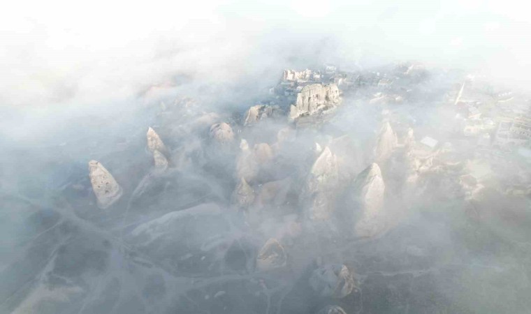 Türkiye’nin önemli kültür turizm merkezlerinden Kapadokya bölgesinde sabah saatlerinde yoğun sis etkili oldu. Görüş mesafesi bazı yerlerde 20 metreye kadar düştü. Peribacaları, doğal kaya oluşumları ve bir birinden ilginç vadilerde sis, farklı güzelliği ortaya çıkardı. O güzellik dron ile havadan görüntülendi.