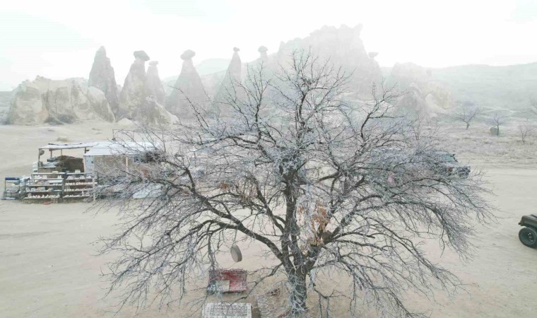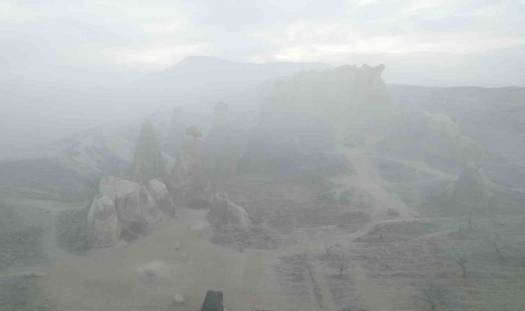 Kapadokya bölgesinde sabah saatlerinde etkili olan olumsuz hava nedeniyle sıcak hava balon turları iptal edildi. Sisler arasında kaybolan peribacaları ise havadan görüntülendi.