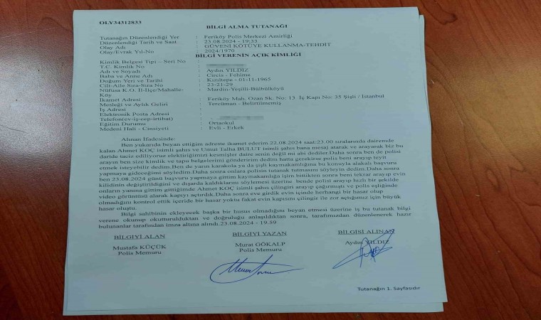"Ben yurtdışına sürekli işim gereği çıkıyorum. Her geldiğimde kendi dairelerimin kilitlerini polis eşliğinde çilingir marifetiyle kırarak değiştiriyorum. Fakat şikayetçi olduğum şahıs benim yurtdışına çıktığım zamanları fırsat bilerek kilitleri değiştirip haksız kazanç elde etmek amacıyla dairelerimi kiraya veriyor. Bu yaşananlara bütün bir bina şahit. Hatta bir grubumuz var. Bu grupta kimliği belirsiz kişilerin dairelerimde kalıp insanlara rahatsız verdiklerine dair beyanlar ve şikayetler var. Şu anda ben dairelerimden bir tanesini sadece polisi arayarak geri alabildim ve kiraya verdim. Allah ondan razı olsun. Onların getirdikleri kişileri bilmiyoruz. Kontrat yapma hakları yok ve yapmıyorlar. Kaçak elektrik kullanıyorlar. Suya gelirsek İSKİ’ye sahte bir kontrat sunuyorlar. Feriköy İSKİ Müdürlüğü’ne gittiğimde adımın geçmediği sahte bir kontrat ile karşılaştım. 2021’den biri 3 dairem kirada başkası kirayı alıyor ve ben mağdurum ve yargıdan başka sığınacak bir yerim yok.” diye konuştu.