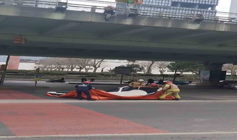 Olay yerine gelen ekipler, öncelikle trafik akışını keserken, itfaiye ekipleri ise saniyeler içinde hava yatağını kurdu. Bunun üzerine metrelerce yüksekten atlayan kadın, hava yatağına düşerek hayatta kaldı. Şahıs, sağlık ekiplerinin müdahalesiyle tedbir amaçlı hastaneye götürülürken, panik anları bir vatandaşın cep telefonu kamerası tarafından kaydedildi.