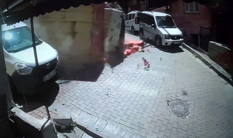 Şişli’de eşya yüklemesi yapılan nakliyat kamyonu frenleri boşalınca önce balkonu yıktı, ardından da devrilerek yan yattı. Feci kaza kameralara yansırken, kazada 3 kişi hafif şekilde yaralandı.