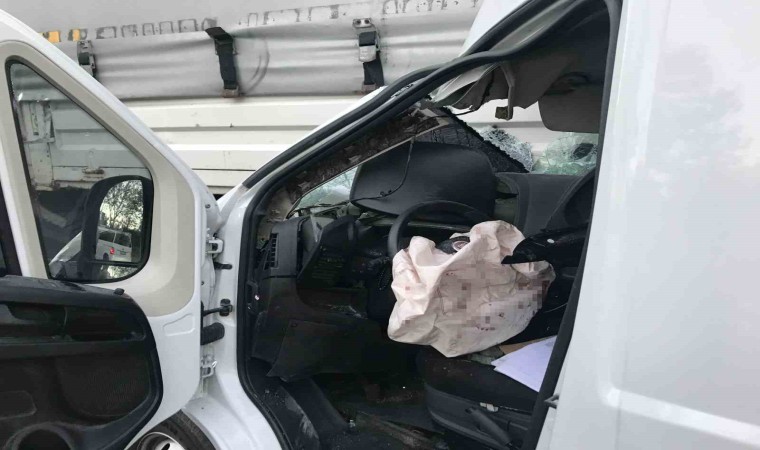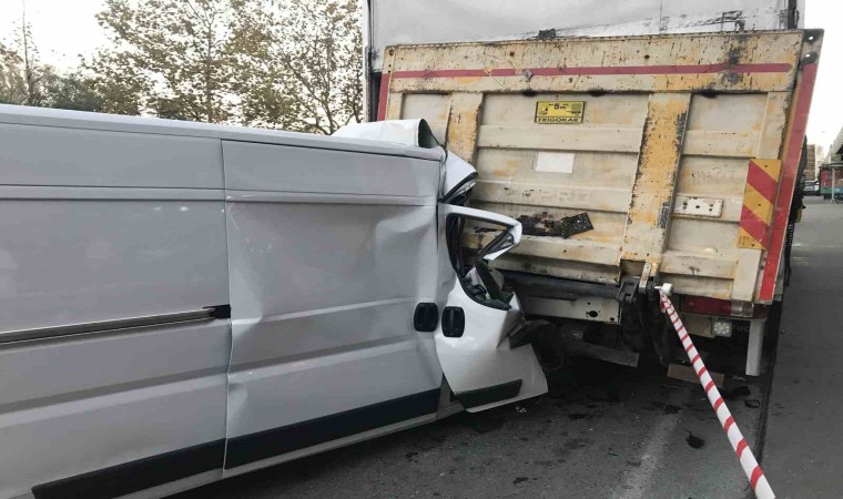 Şişli’de sürücüsünün kontrolünden çıkan panelvan, park halindeki kamyona arkadan çarptı. Sürücü kazayı hafif sıyrıkla atlattı.