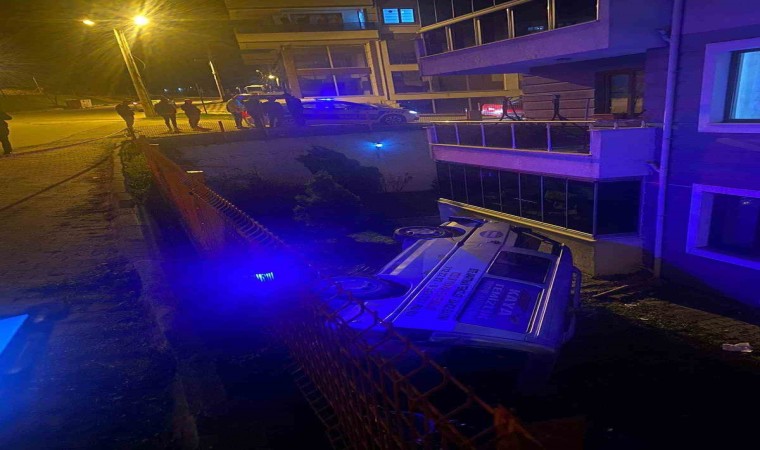Karabük’ün Safranbolu ilçesinde sürücüsünün kontrolünden çıkan hafif ticari aracın sitenin bahçesine uçması sonucu 3 kişi yaralandı.